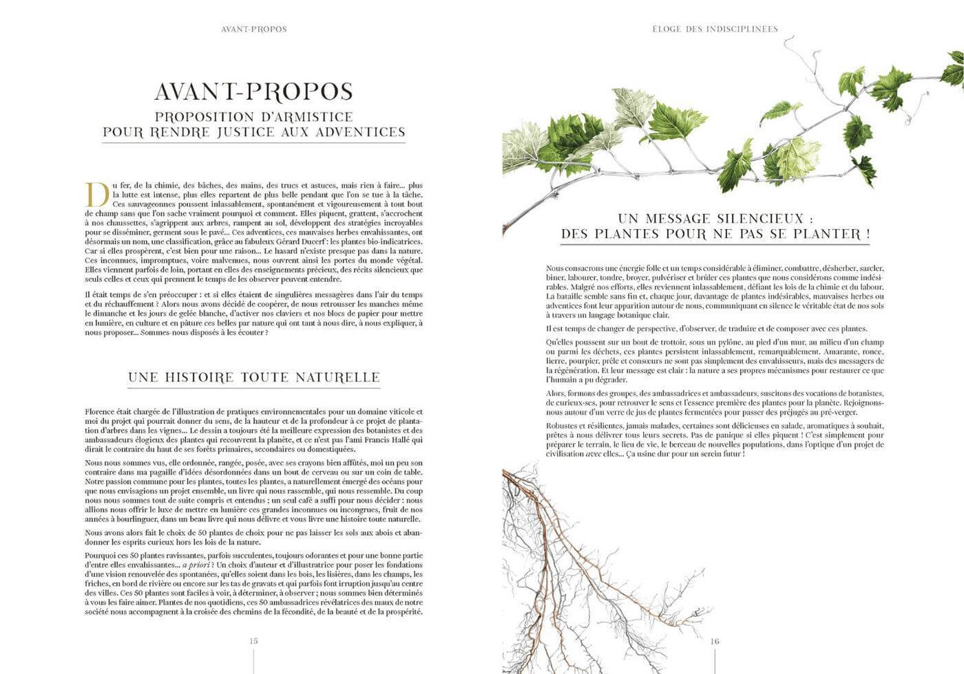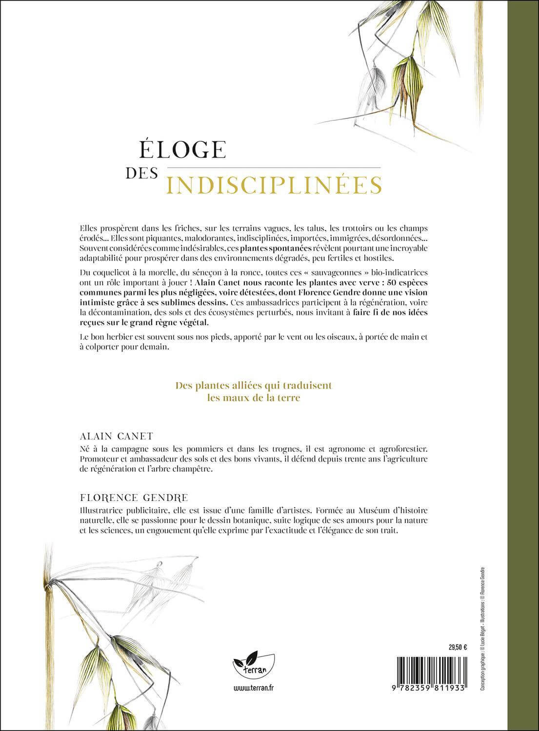 Elles prospèrent dans les friches, sur les terrains vagues, les talus, les trottoirs ou les champs érodés… Elles sont piquantes, malodorantes, indisciplinées, importées, immigrées, désordonnées… Souvent considérées comme indésirables, ces plantes spontanées révèlent pourtant une incroyable adaptabilité pour prospérer dans des environnements dégradés, peu fertiles et hostiles. Du coquelicot à la morelle, du séneçon à la ronce, toutes ces « sauvageonnes » bio-indicatrices ont un rôle important à jouer ! Alain Canet nous raconte les plantes avec verve : 50 espèces communes parmi les plus négligées, voire détestées, dont Florence Gendre donne une vision intimiste grâce à ses sublimes dessins. Ces ambassadrices participent à la régénération, voire la décontamination, des sols et des écosystèmes perturbés, nous invitant à faire fi de nos idées reçues sur le grand règne végétal. Le bon herbier est souvent sous nos pieds, apporté par le vent ou les oiseaux, à portée de main et à colporter pour demain.